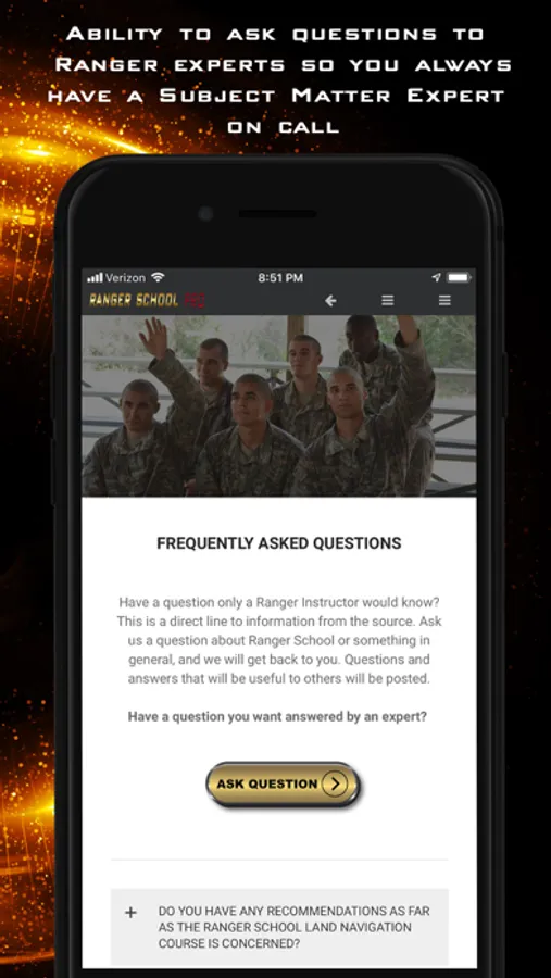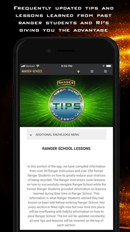 Ranger School Professional is constantly getting updated and gets the information from the source. This app is the ultimate resource if you are trying to significantly increase your chances of graduating or being a more proficient Infantryman. If you have a question or concern, you can message us from the app and get a quick response.