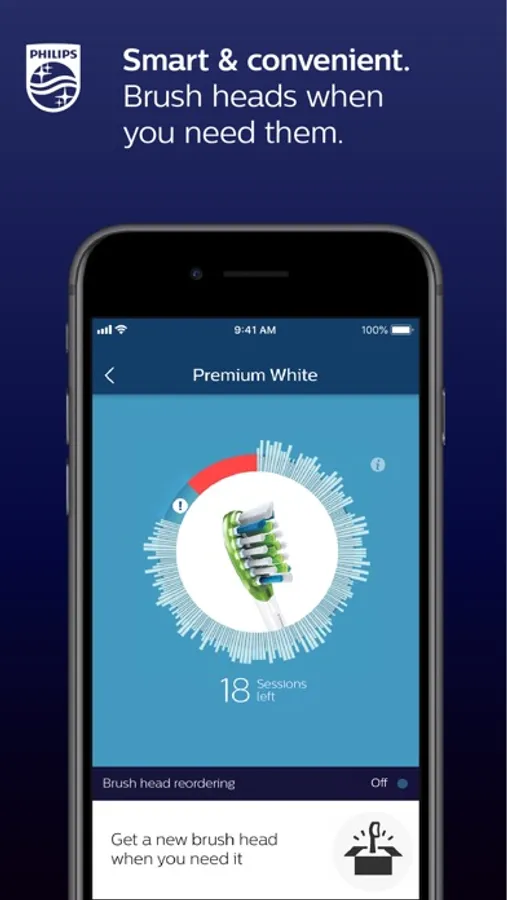 Always have a fresh brush head when you need one. As the Sonicare app monitors your brush head’s usage, the reordering service reminds you when you need a replacement, and can automatically place an order so it arrives just in time. The brush head smart reordering service is available in the United States, United Kingdom, Germany, France, Spain, Italy and Japan.