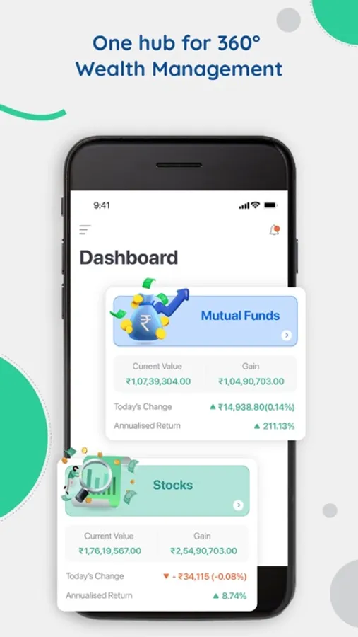 All-in-one Mutual Fund App & Stock investment App. Monitor & manage all your investments on one convenient dashboard. Invest in SIP and mutual funds online, track their growth, and redeem at your convenience. Get instant alerts for real-time tips, recommendations and notifications regarding NAV & stocks.