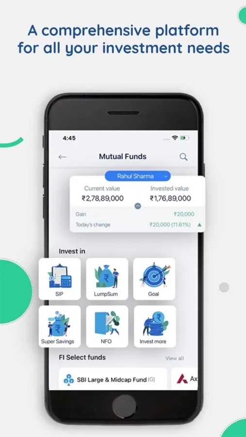 Online Mutual Fund investment, SIP, Stock investment (Equities), Derivatives, NPS, Fixed Deposits & more in one app. Hassle-free, paperless transactions with zero fees.