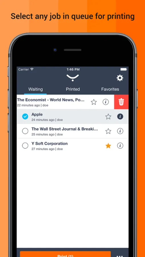 The YSoft SafeQ Mobile Terminal is a software-based terminal. This Mobile Terminal supports functions provided by the YSoft SafeQ 6 workflow solutions platform. Users can identify the printer by scanning the QR code, authenticate and then manage their YSoft SafeQ prints directly in their device. The printer must be connected to the YSoft SafeQ server via the network.