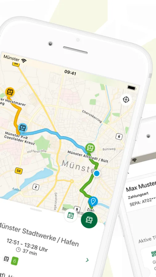 Erfahren Sie auf einer übersichtlichen Karte, was um Sie herum passiert und suchen Sie sich mit der neuen und verbesserten Fahrplanauskunft eine optimale Busverbindung heraus. Auch Ihre ÖPNV-Tickets können Sie bequem über die münster:app kaufen.