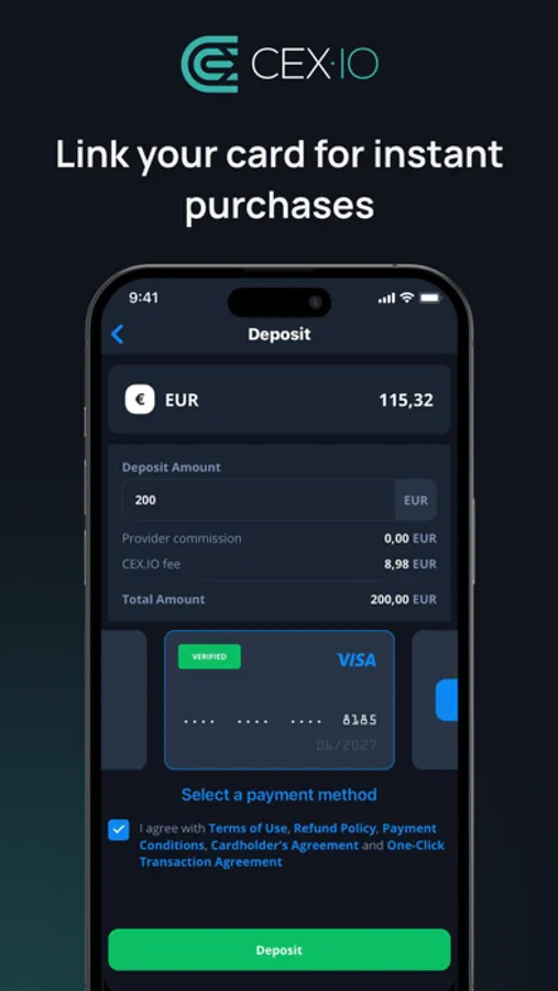 - Rapid card deposits and withdrawals. Deposit funds to your CEX.IO balance, or transfer cash to your debit/credit card in minutes.
