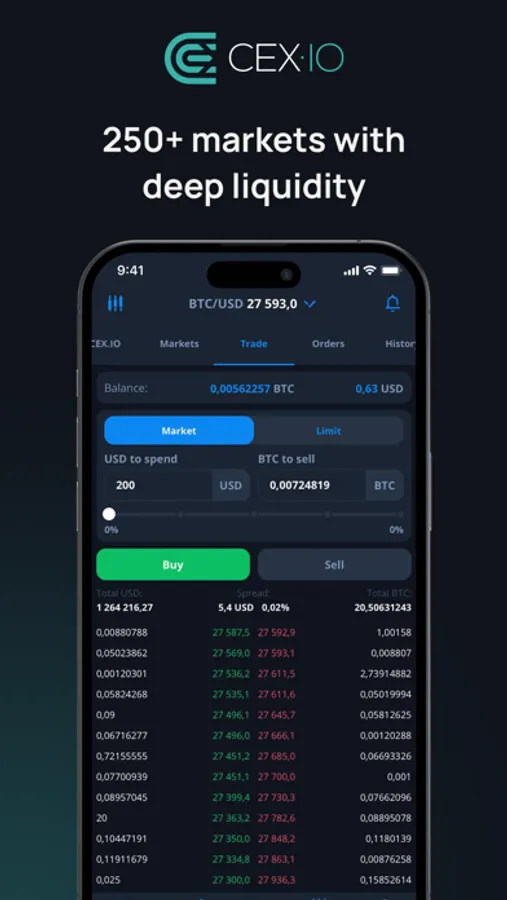 The CEX.IO Exchange app provides the ultimate crypto experience, with a variety of services in the palm of your hand. Our app empowers you to trade, sell, and buy Bitcoin and other cryptocurrencies instantly, anytime, and anywhere. Spend less than a minute to purchase crypto using a debit/credit card, Apple Pay, PayPal*, or a CEX.IO balance. In addition, with the CEX.IO Exchange app, you have access to 250+ crypto-to-crypto and crypto-to-fiat markets wherever you go.