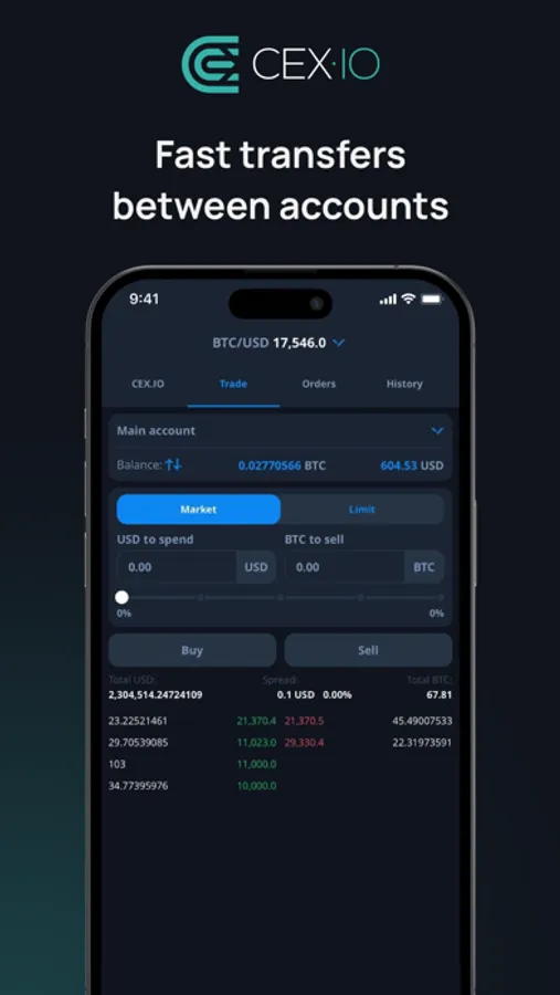 With the CEX.IO cryptocurrency exchange, you can take advantage of a wide array of currency pairs, deep liquidity, and an advanced order-matching mechanism. With this app, we combined the best CEX.IO ecosystem features, and packed them into a straightforward interface. Our cryptocurrency trading platform empowers you to achieve fast execution of your trades, while our staking* service provides you with the opportunity to earn crypto just by holding it in your balance.