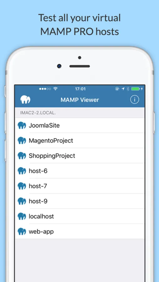 Easily test your MAMP PRO virtual hosts on your iPhone or iPad right in your LAN. No more router configuration needed. Testing your projects on iPhone or iPad is just one click away.