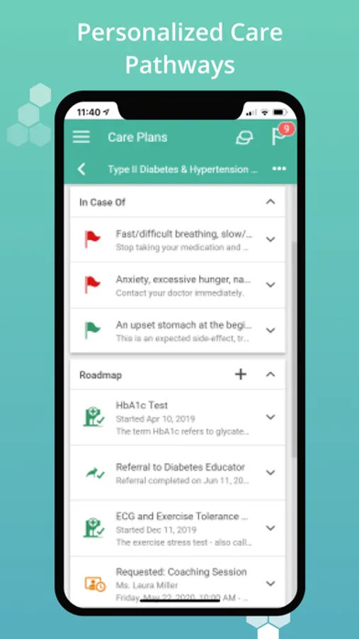 NexJ Health Coach connects participants to a real-life healthcare professional, such as a health coach, who works with the participant to create a personalized wellness plan that meets their health and wellness goals and objectives. Using the app, participants track their behaviors, biometrics, and subjective information such as how they feel. The healthcare professional provides participants with positive encouragement and feedback via secure messaging and together they can address questions to help fine-tune the program. With the support of their healthcare professional and other members of their circle of care, participants will develop a better understanding of the relationship between their behaviors, their biometric results and how they feel, motivating them to make sustainable behaviour change.