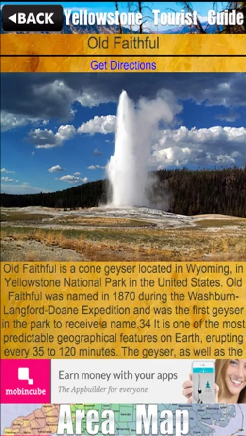 This application provides photos, information, maps and navigation for the best areas to visit in Yellowstone National Park. Just download the application and enjoy your trip to one of America's most iconic and beautiful parks.