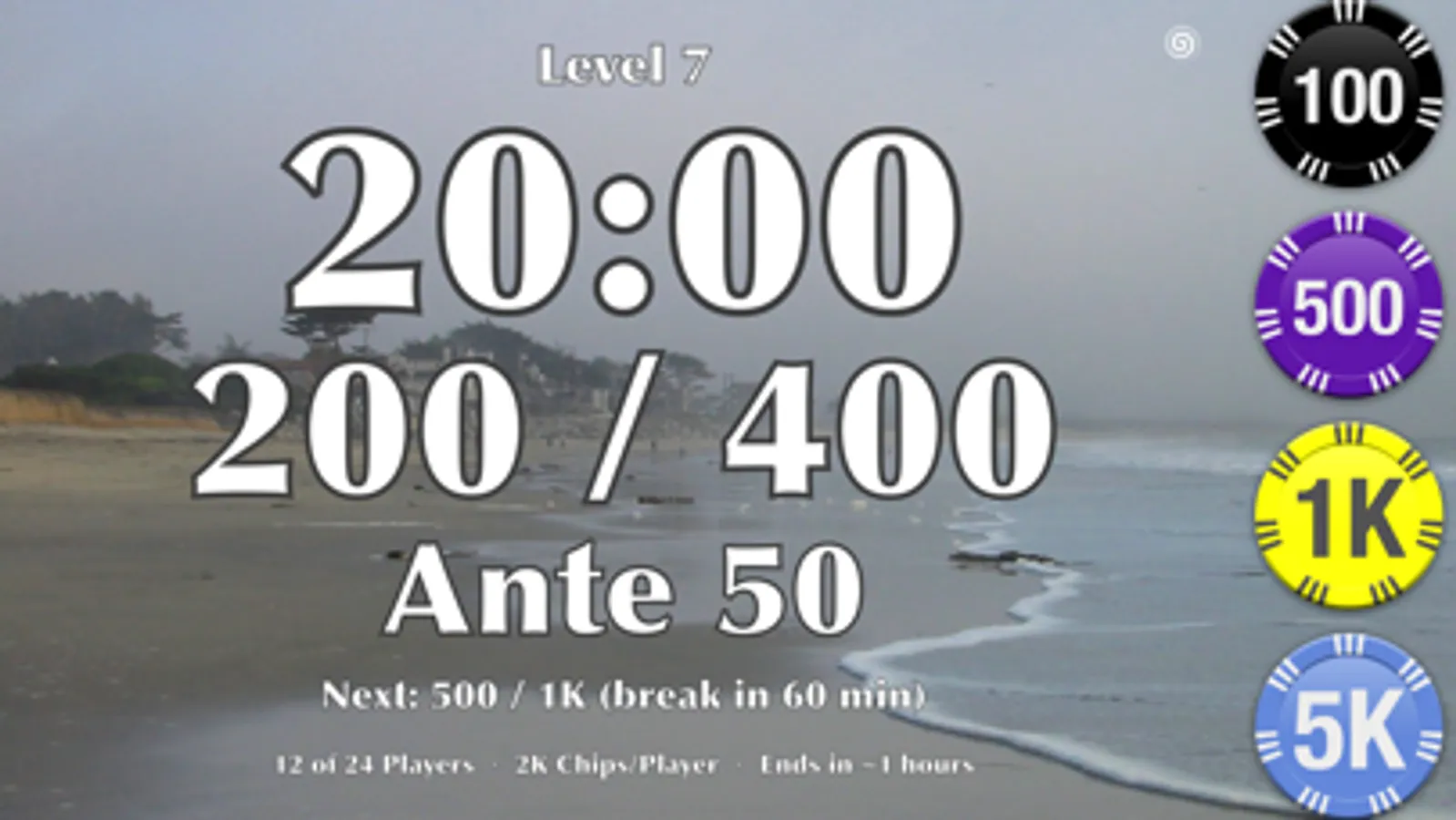 • Fully customizable tournament timer: Have it automatically pause after any level or break, or just have it run without pauses to completion. And, it will keep your device from sleeping while your tournament is running.