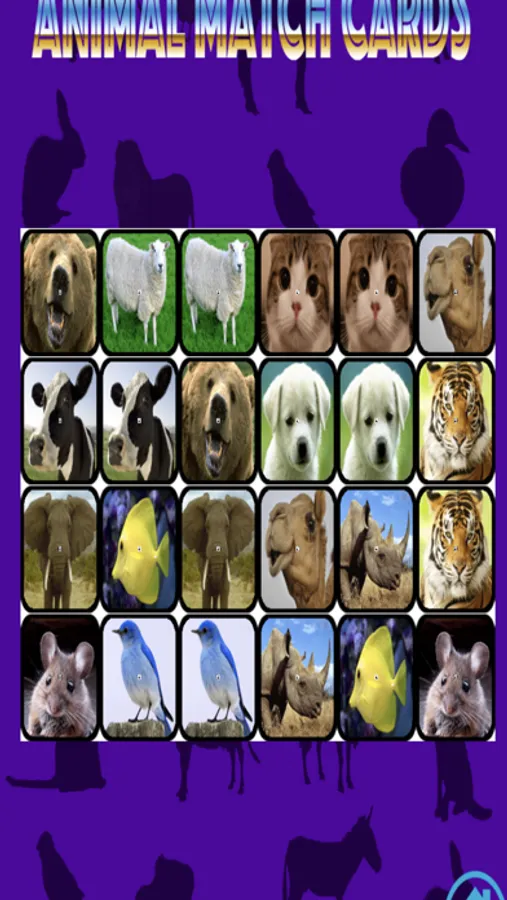 Exercise your memory with animal match cards. Animal match cards is a classic pairs card game. Cards are laid out in a grid face down, and players take turns flipping pairs of cards over. If the two cards match they flip back and disappear.