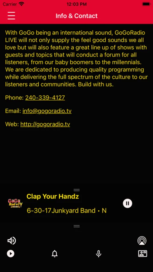 With GoGo being an international sound and the official music of Washington D.C., GoGoRadio will not only supply the feel good sounds we all love but will also feature a great line up of shows with guests and topics that will conduct a forum for all listeners, from our baby boomers to the millennials. We are dedicated to producing quality 24 hr programming while delivering the full spectrum of the culture to our listeners and communities. GoGoRadio- "We Are the the Official Station for the Official Music of Washington DC"