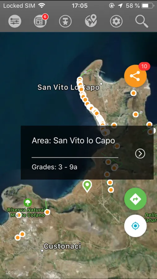 Use filters to see only the areas with route types and grades you want: sport, bouldering, trad, etc.