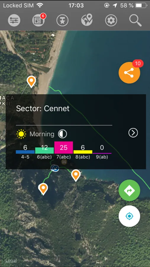 The application can work offline, without Internet access, just make sure you downloaded sectors or whole areas you need in advance. You can download them all at once (on the "App Guides" tab of the main menu) or manually, sector by sector. And make sure your device’s battery has enough power to keep you on track as long as you need it!
