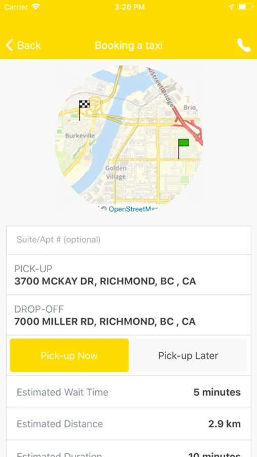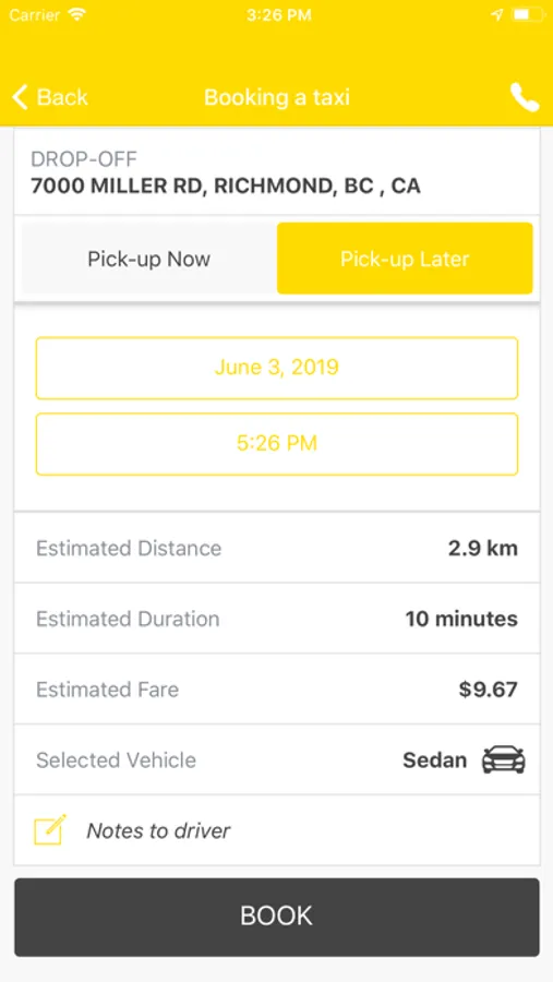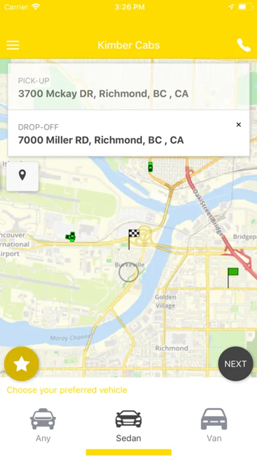 Book a taxi appointment with Kimber Cabs from your mobile device. Specify a pickup location, a date, and a time.