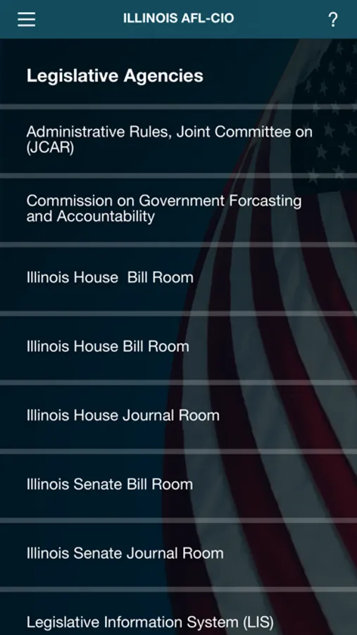 A digital interactive legislative directory of the 101st Illinois General Assembly. Quickly find contact information for the Illinois Executive Branch, the Illinois Congressional delegation and members of the Illinois General Assembly. Includes maps of Illinois Congressional, State Senate and State House Districts, seating charts for the Illinois House and Senate