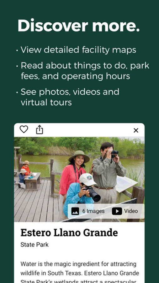 − Find in-depth information on each park, including: things to do, contact information, fees, operating hours, etc.
