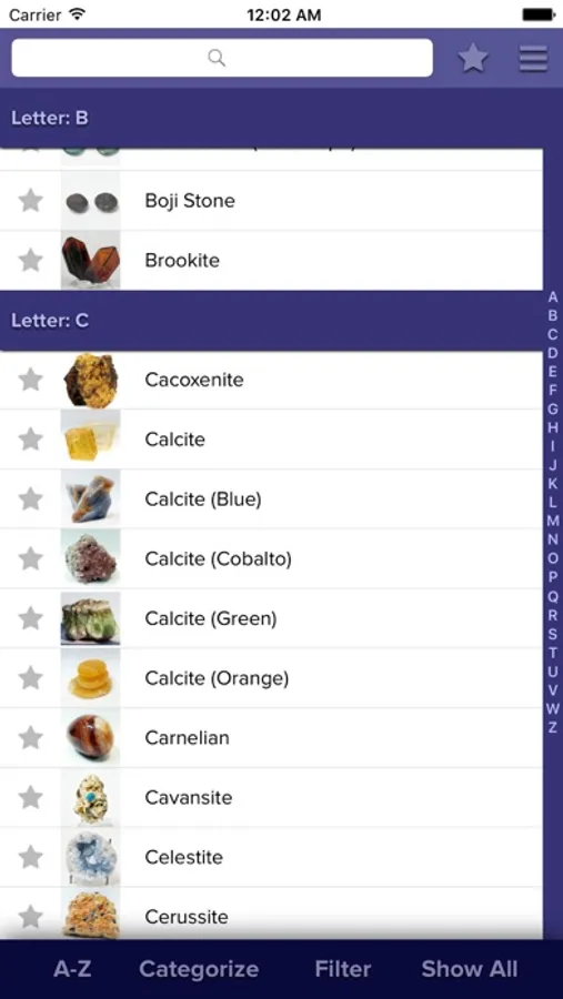 Favorites feature lets you keep track of your favorite minerals and crystals for easy access.