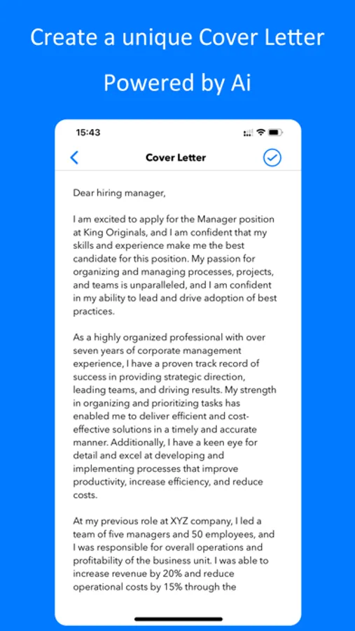 √ Create your unique Cover Letter with the power of Artificial Intelligence