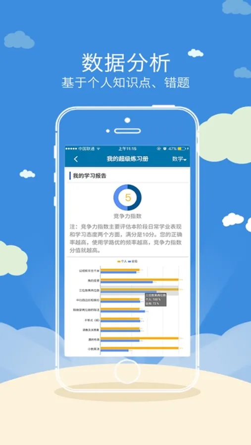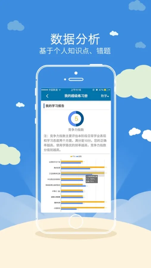学生可以通过学路优APP便捷的收集错题,接收教师布置的作业信息;系统通过大数据分析学生的知识点掌握情况,竞争力指数,提供知识点掌握图谱;基于错题,知识点掌握图谱,生成基于个人的《超级练习册》;基于区域内学生错题情况,生成《典型习题集》;提供有效的针对学生个体的学习优化路径,成绩提升方案。