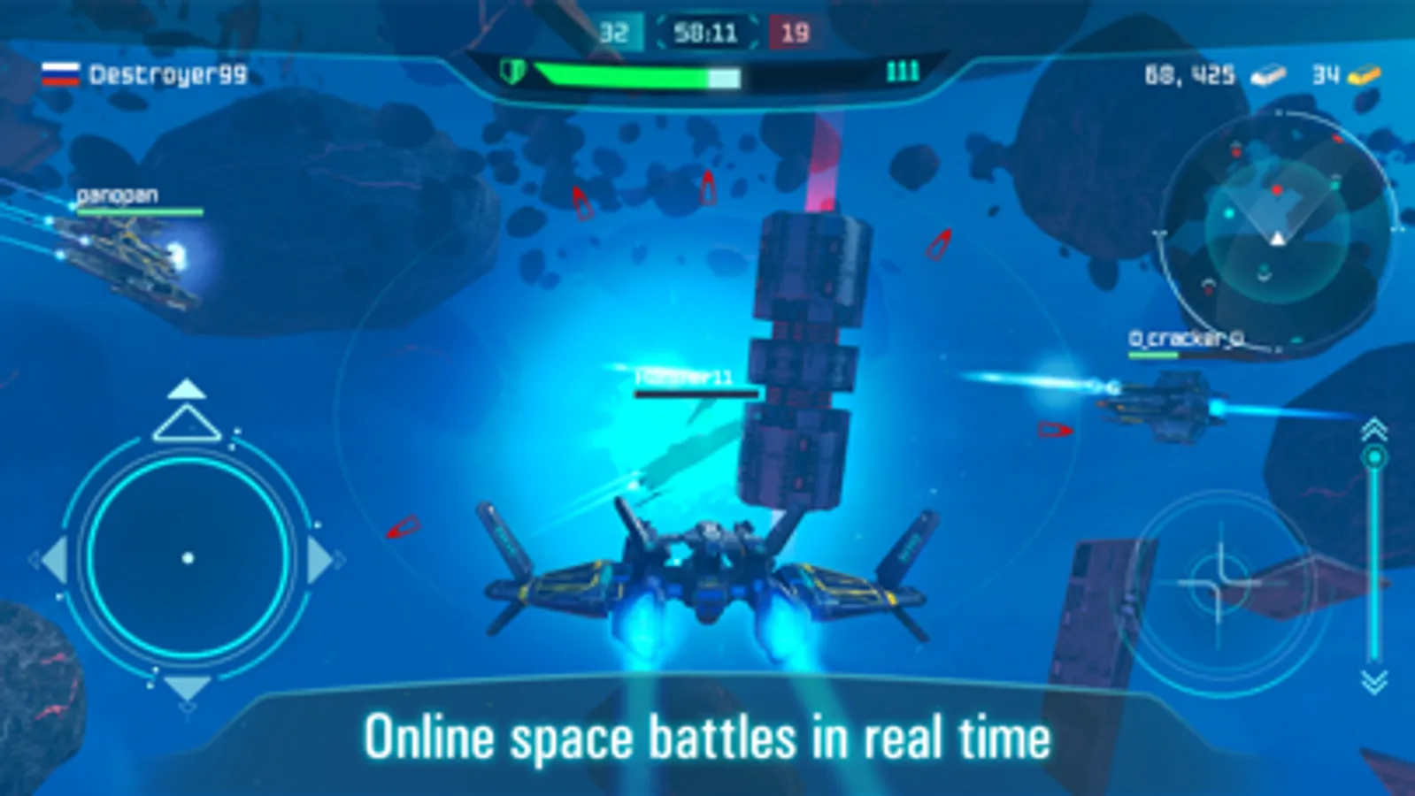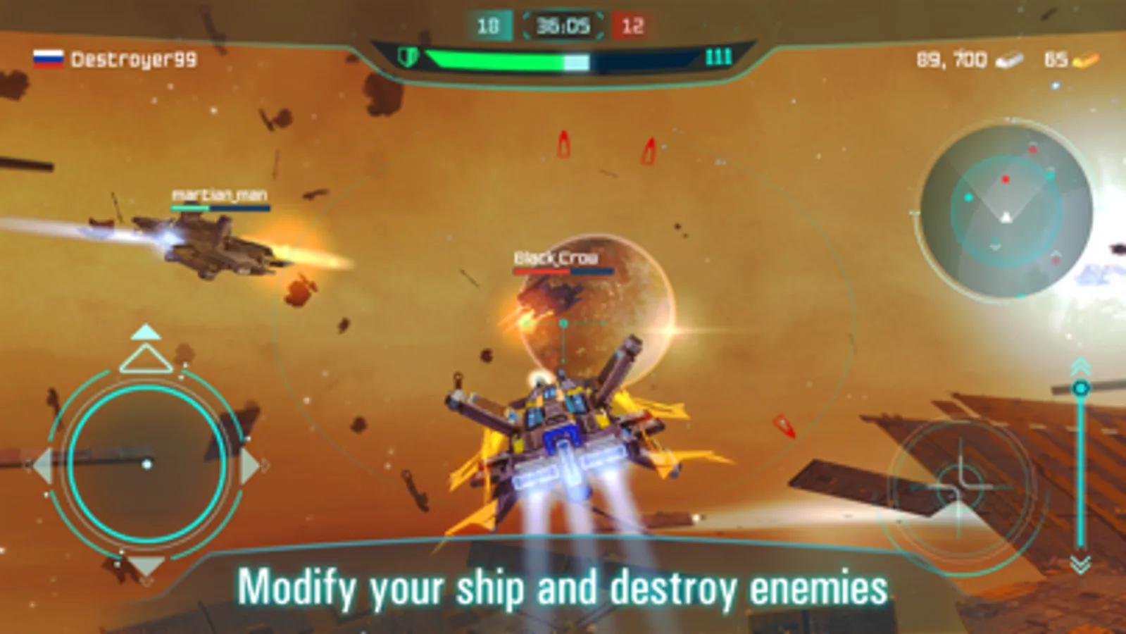 Join a global online space war, face with everyone or join with your friends and create a team!