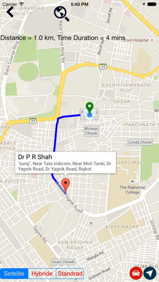→ Select any one and you can able to see the direction from your current location to destination on Google Map with estimated time duration and distance.