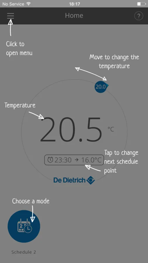 Free app, working only with the De Dietrich connected thermostat SMART TC °.