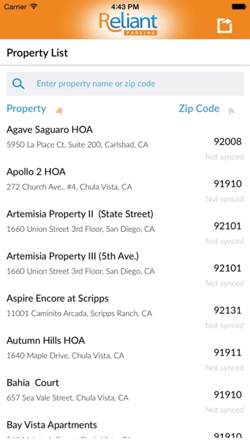 User can navigate to the property either in offline or online mode. Inside the property, the user can search for a plate number, permit number and space number. In addition, there is a “Tow” and “No Tow” list to allow for better enforcement. Residents can order instant guest and resident permits which become immediately searchable.