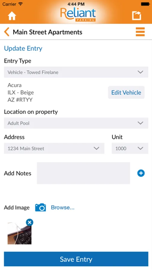 User can log a plate number or permit number to determine if this vehicle has been cited before and what the next action will be. No need for paper tracking anymore. Reliant will create a log to track with photos the prior notices given to a vehicle.