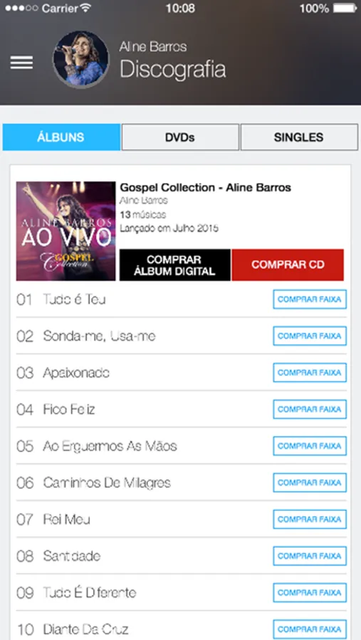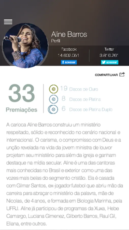 • Perfil dos artistas com todas as informações sobre a carreira do cantor