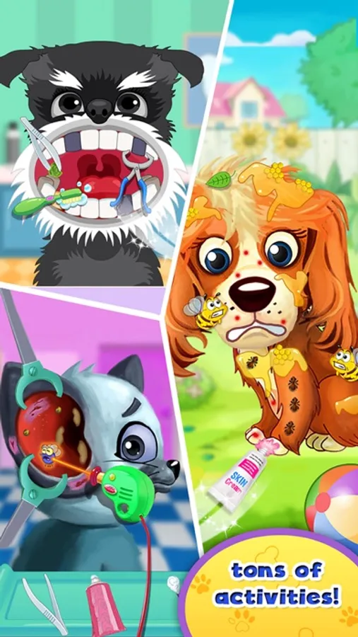 Fun pet game for kids includes pet cleaning, dress up, pet doctor and take care.