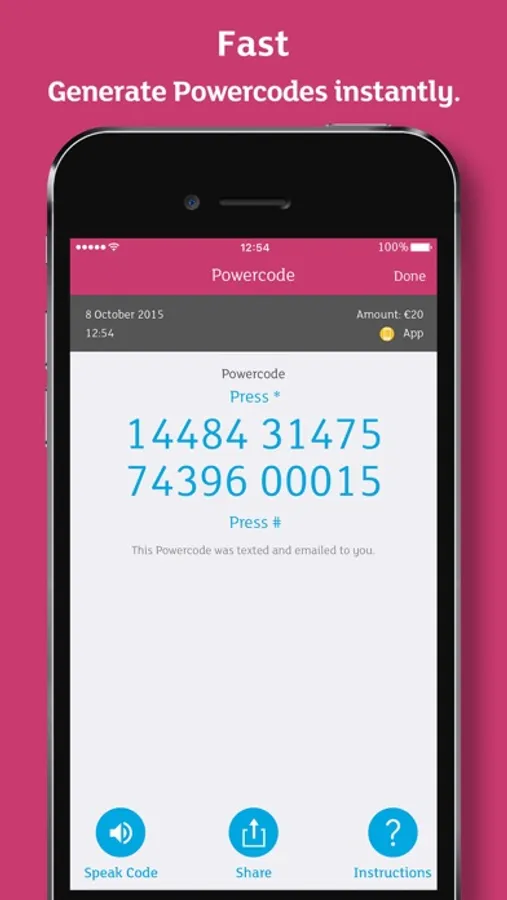 + The Speak Powercode feature allows you to hear your top up Powercode as you enter it into your keypad