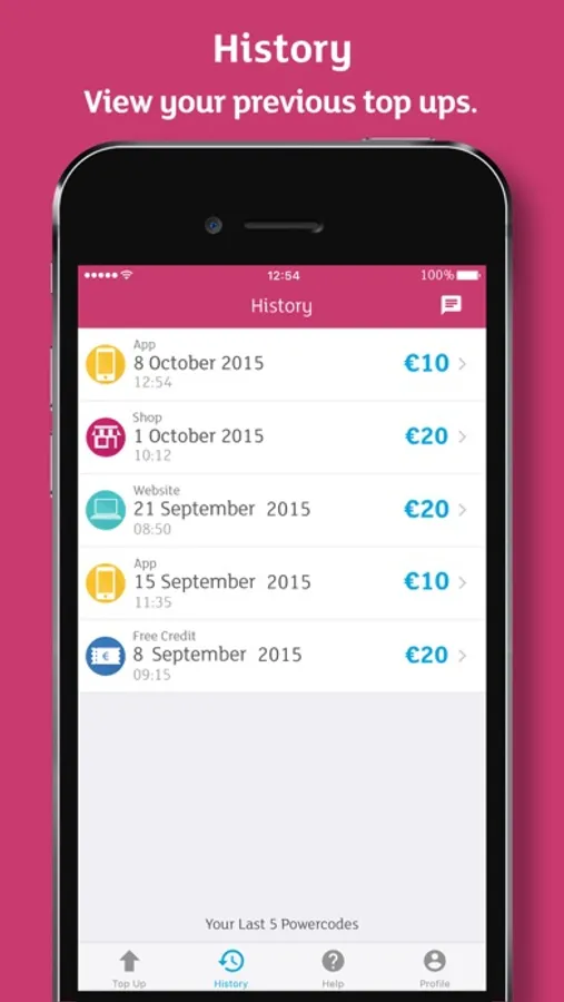 + The History section enables you to track your electricity usage by showing you the amount and date of your last 5 top ups
