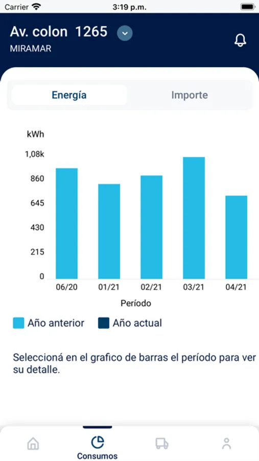 3. Consumos: obtén el historial de consumo de los últimos doce meses.