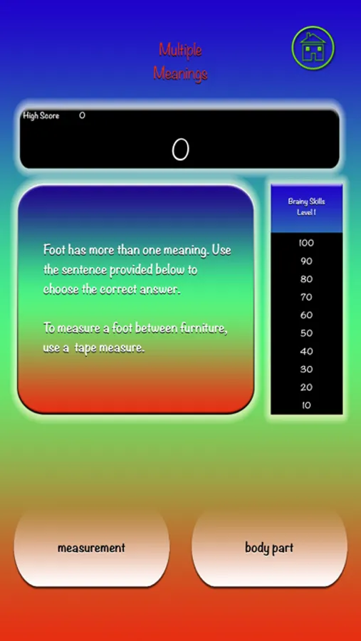 Brainy Skills Multiple Meanings game is designed to help children and young adults learn how and when to use words with the same spelling and different meanings depending on context. The interactive format creates a challenging yet fun atmosphere to learn how and when to apply words with multiple meanings with the same spelling.