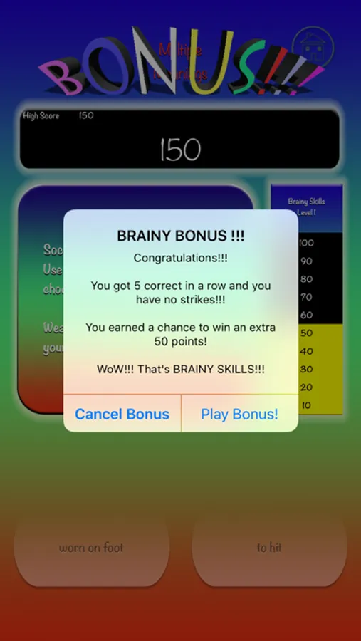 Adaptable as needed by parents, teachers, and therapists for a variety of skill levels, the sentences can be read aloud to the student if needed. Students can play on their own or with a caretaker, assistant, or therapist to guide them along and practice basic oral reading skills. First read sentences as they are written, then find the correct option from the multiple choice options, while working your way up the scoreboard for points. It’s that easy! Motivate your child to beat their score each time they play and get to the highest score. There are also Brainy Bonuses that at times are tricky to teach and review the core material. The bonuses differ in complexity, and offer an opportunity to earn more points.