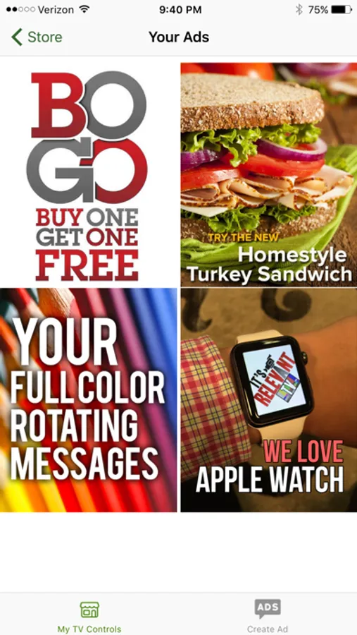 Paired with our free App for tvOS, you have an easy way to display and take advantage of all the benefits of a custom TV network from It's Relevant TV. TV programming (that is officially licensed for public display) attracts the attention of your visitors, while the built-in tools allow you to effortlessly and automatically share your social media posts and promotions to better reach and engage your customers.
