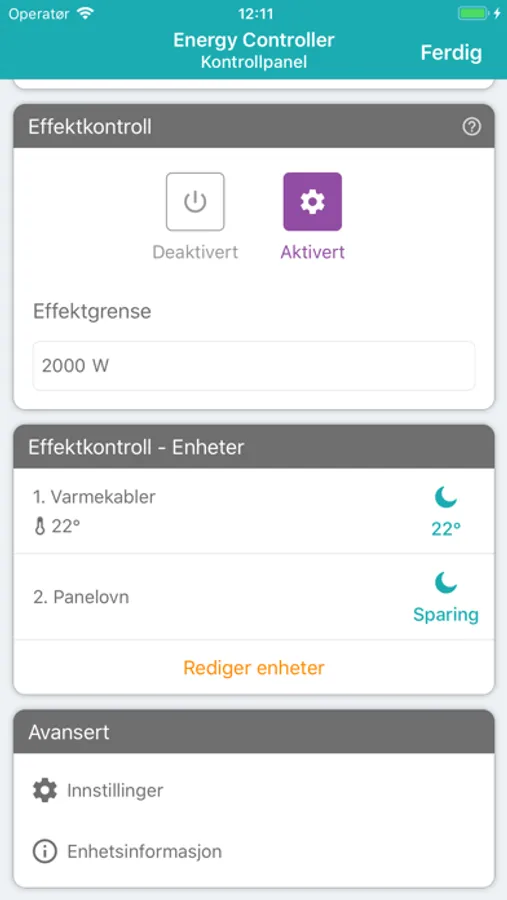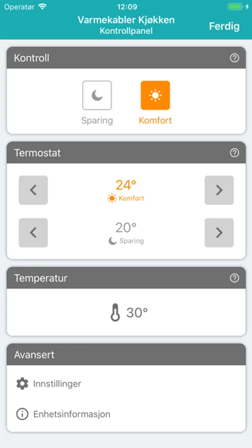- Sett komfort- og sparetemperaturer