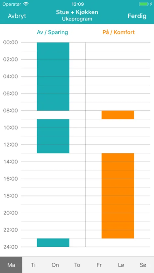 - Opprett ditt eget ukeprogram for varmestyring
