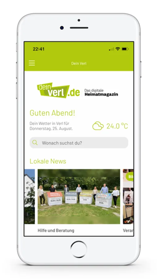 Mit der Dein Verl App bekommst Du genau die Infos und Tipps, die Du brauchst – und zwar zu jeder Tageszeit: morgens alle brandaktuellen Neuigkeiten aus Verl, zur Mittagszeit passende Restaurant-Locations für Deine Mittagspause und zum Feierabend gibt es Konzerte, Kinobesuche oder spannende Ausgehtipps in der Region Verl.