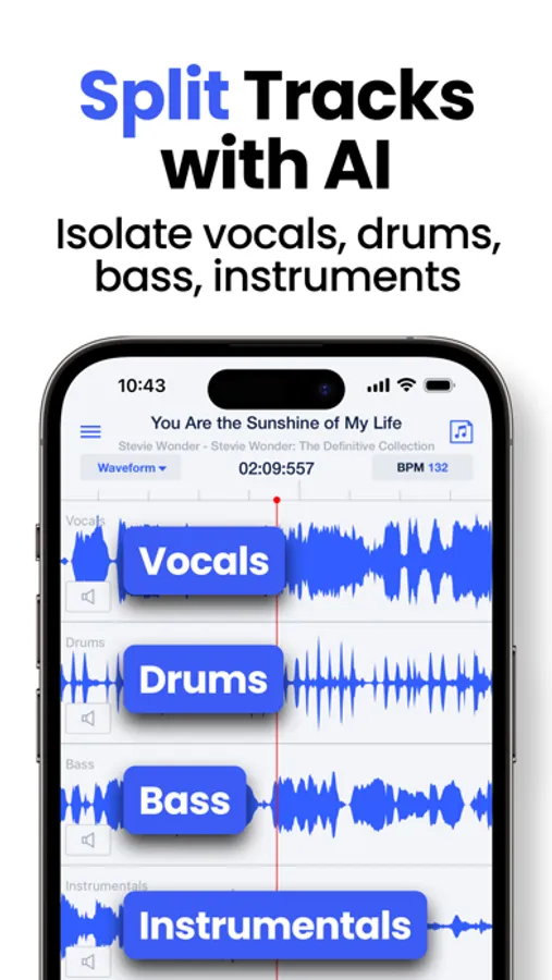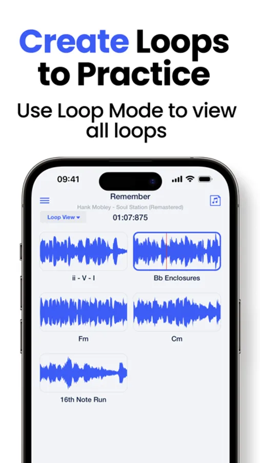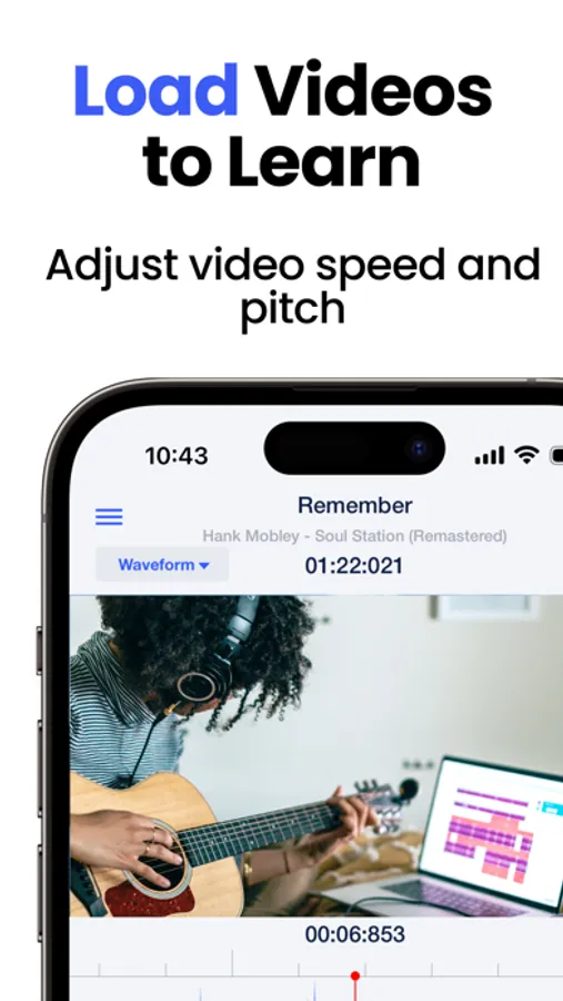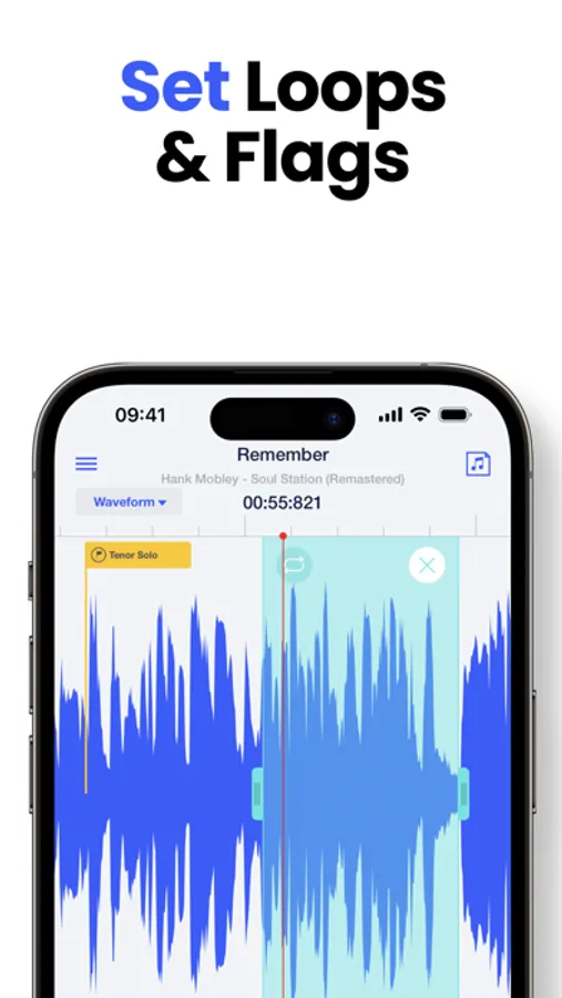 Adjust speed and pitch effortlessly with simple swipe gestures. Tap the waveform to pause the track, then drag to listen at your chosen pace, even one note at a time! Mark song structures or add personal notes using customizable flags on the waveform. Practice specific sections repeatedly by defining looped areas.