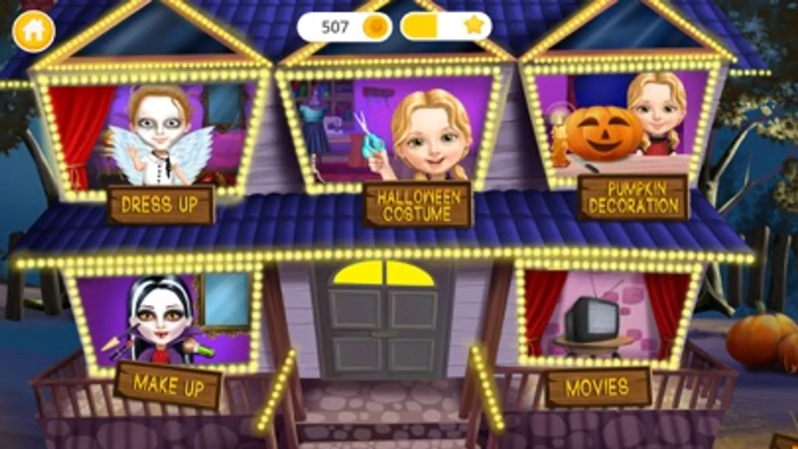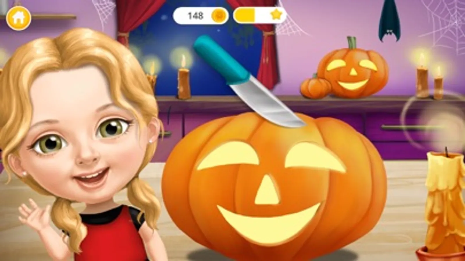 Halloween is coming! Play and have the most adventurous Halloween celebration! Get ready for the Halloween night: carve a pumpkin and decorate her house with jack-o’-lanterns, bats and ghosts. Create your dream Halloween look: make a stunning witch costume or mix and match spooky outfits to create your own gown, and finish with a scary vampire makeup!
