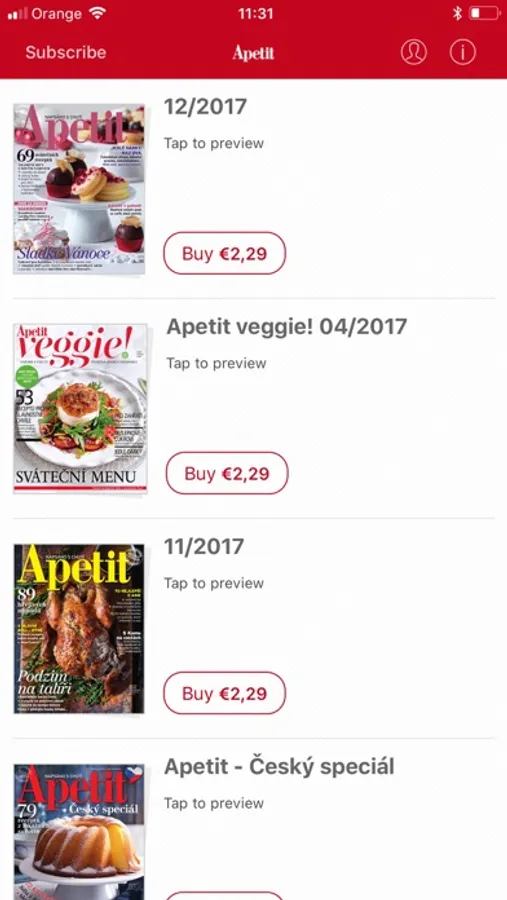 V aplikaci klepněte na „Předplatné“. Připraveny jsou varianty na šest měsíců za 10.99 € a dvanáct měsíců za 22.99 €. Platba je realizována přes váš účet u Apple. Předplatné se automaticky prodlužuje, pokud není zrušeno 24 hodin před vypršením předplaceného období. Správu předplatného najdete v iPhone/iPadu v »Nastavení« |»iTunes a App Store« | »Apple ID« a »Předplatná | Spravovat«.