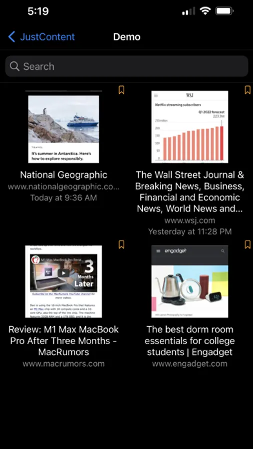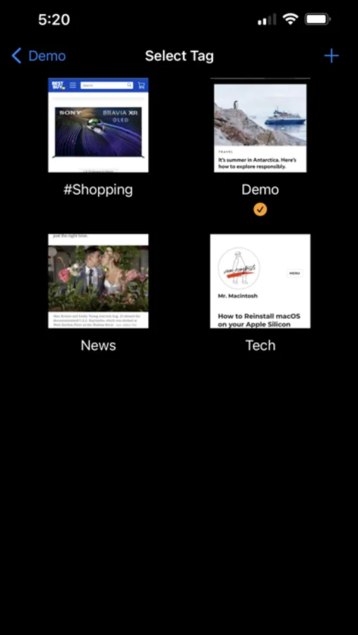 It’s a powerful bookmark manager. Bookmarks can be organized using user supplied tags. Designed to handle large collection of bookmarks and smooth scrolling. Support search by keyword. Long press on each bookmark thumbnail for related operations.
