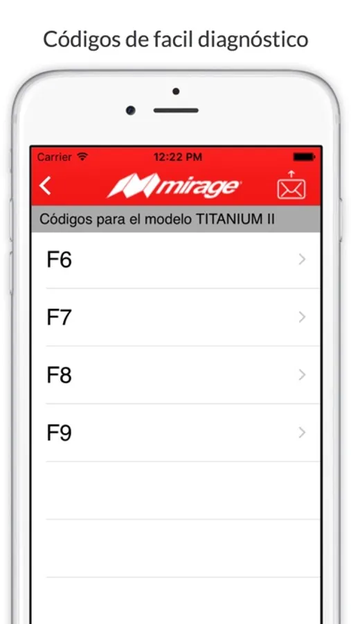 - Con nuestra aplicación para códigos de diagnóstico mirage, usted podrá identificar de forma fácil, práctica y sencilla cualquier duda con respecto a los códigos que aparecen en el display de su evaporador mirage.