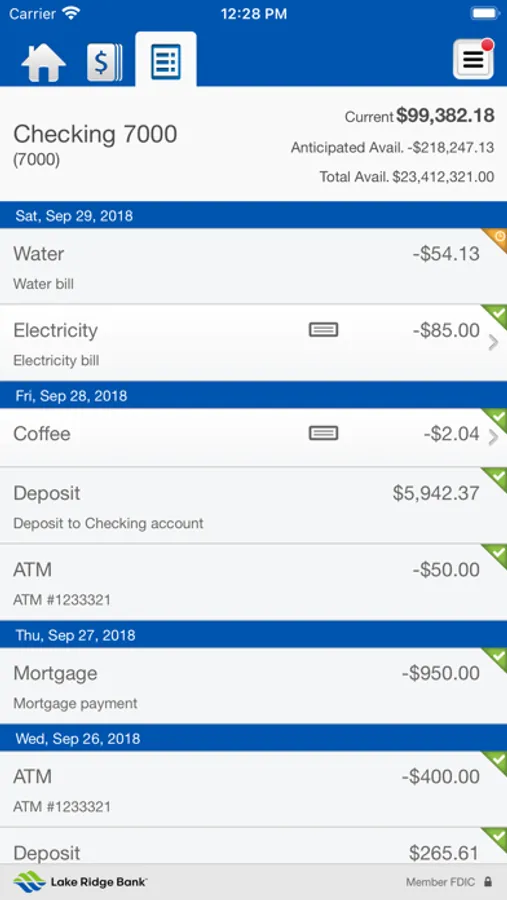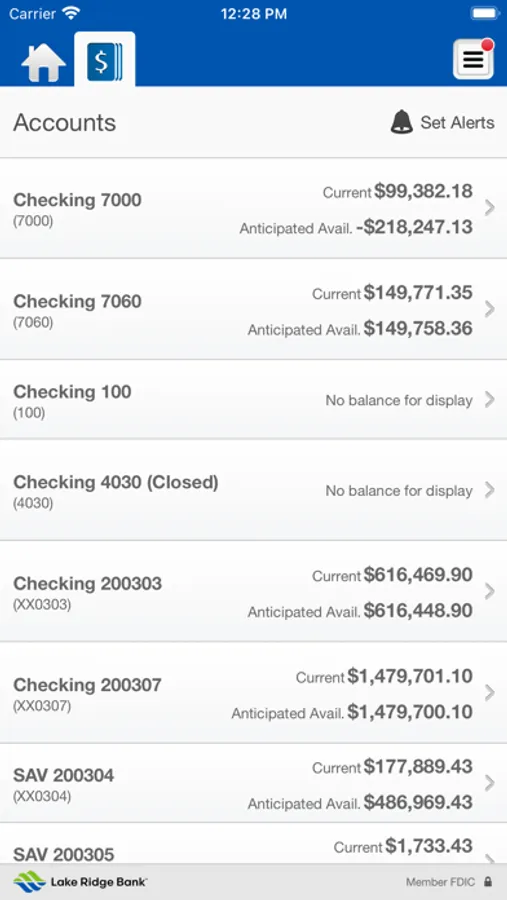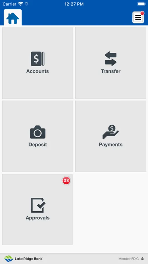 Our “Go Mobile” app gives Lake Ridge Bank business clients access to the following features:
