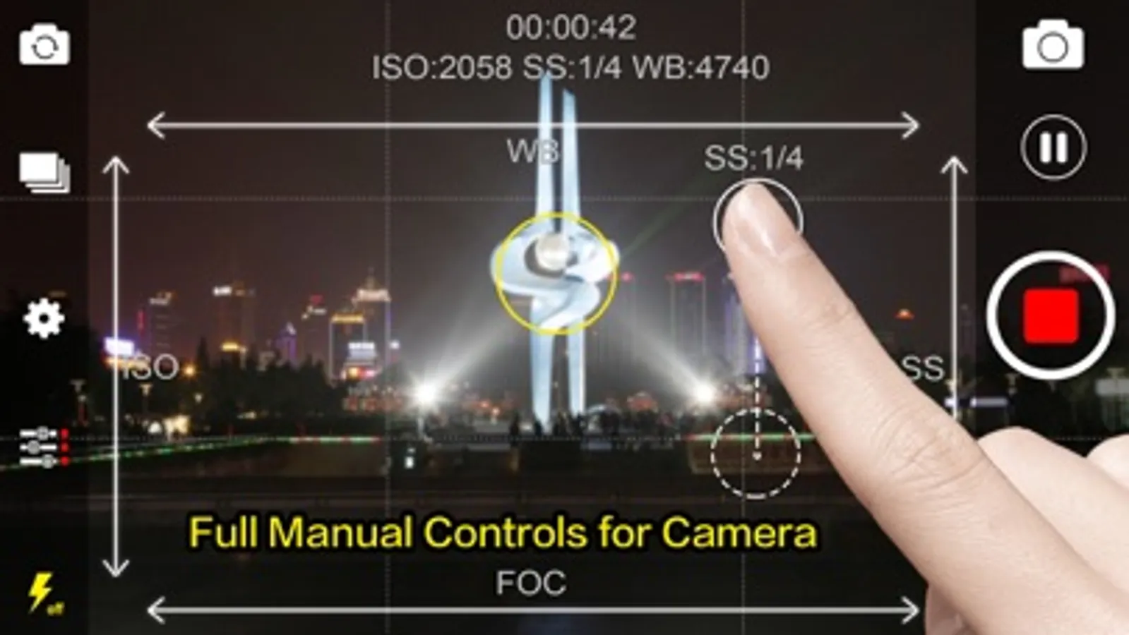 2 Professional manual camera controls: direct swiping to control exposure, ISO, focus as well as white balance.