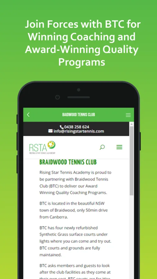 Rising Star Tennis Academy is located in Canberra, ACT. We help players of any skill level achieve their potential and ambitions through the development of technique, self belief, motivation, discipline, and hard work. As an academy of international standard preserving and enhancing the cultural and historical significance of Tennis in Australia, our focus is for excellence in coaching, relationships, innovation and service to our regional, national and international communities. We value openness and honesty, sportsmanship and fairness, mateship and teamwork, with inclusiveness and access to all.