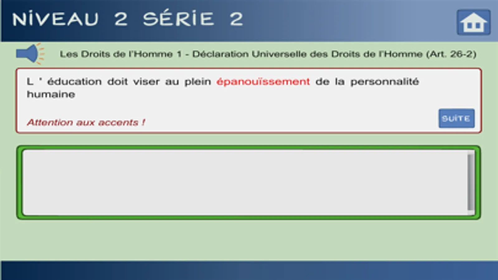 Elle vous propose de véritables dictées orales avec correction à l'écran. Elle suit une progression très étudiée, adaptée au niveau de chacun. Vous pouvez ainsi travailler à votre rythme.