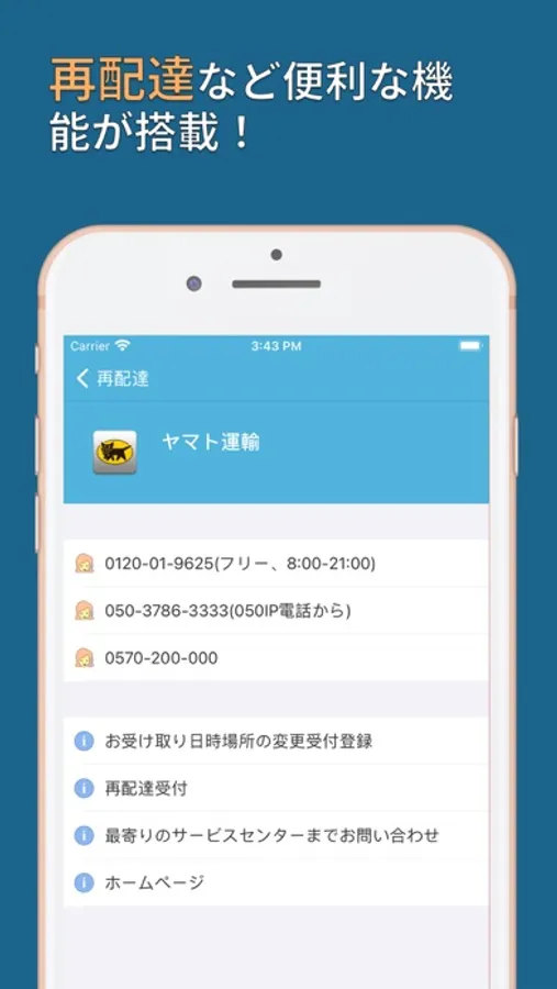 * 1タップで再配達を依頼する、電話やホームページからもできる