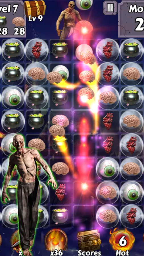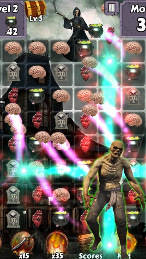 The Undead have awakened! They call out to you from beyond the grave! Help them on their unholy journey by matching and collecting the brains, hearts, and souls of their victims!